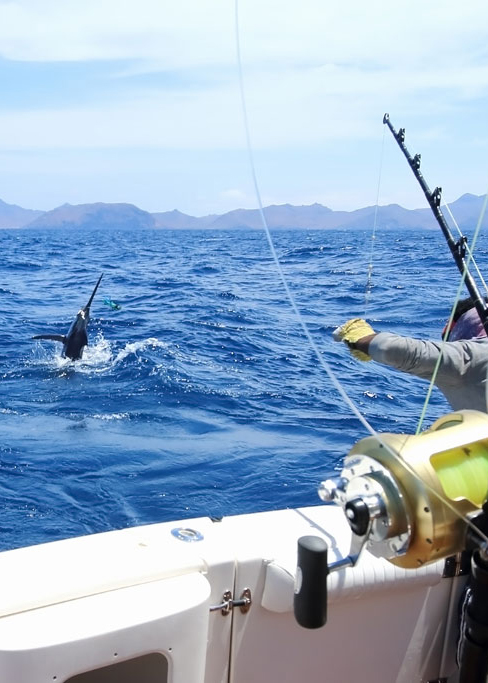 Nuestros tours offshore se realizan en aguas más profundas, buscando algunas de las especies de pesca deportiva más codiciadas del océano. Estas salidas son especialmente populares para la pesca de Pez Vela y Marlin Negro (captura y liberación). Dependiendo de la temporada, también es posible encontrar Dorado (Mahi-Mahi), Atún Aleta Amarilla, Wahoo, Rainbow Runner, Macarela, Pez Gallo (captura y liberación) y Bonito del Pacífico.